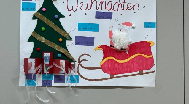 Świąteczne projekty językowo-plastyczne wykonane przez uczniów klas 7A i 7D na lekcjach języka niemieckiego