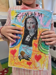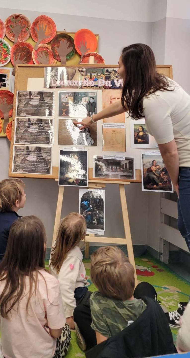 Klasa 1A w ramach innowacji pedagogicznej realizowała w tym miesiącu temat: „Leonardo da Vinci – renesans, obserwacja przyrody, rysunek i wynalazki.” Dzieci inspirowały się twórczością mistrza, ale przede wszystkim szukały sposobu na wyrażenie siebie – poprzez kolor, emocje i twórczą ekspresję! Powstały wyjątkowe wersje „Mony Lisy”, które pokazują, że w każdym małym artyście drzemie duch renesansu!