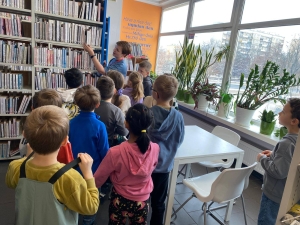 Dziś uczniowie 1c wzięli udział w lekcji bibliotecznej poświęconej „Planecie języków”. Poznali katalog biblioteczny, uczyli się jego obsługi, wyszukiwali książki na półkach, a na koniec czekały ich quizy językowe – dla urozmaicenia zajęć i świetnej zabawy!