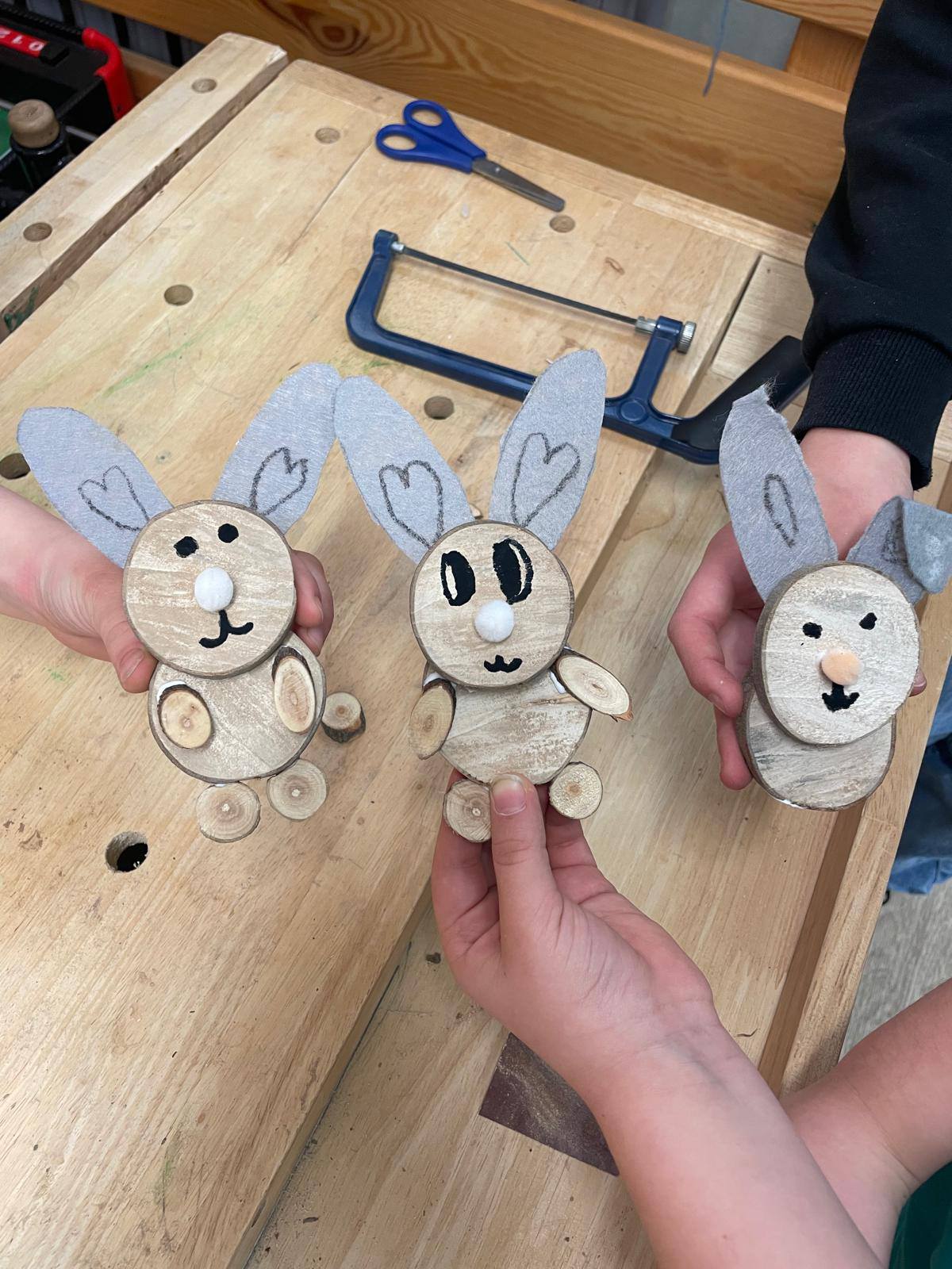 Podczas zajęć inspirowanych Wielkanocą dzieci wcieliły się w małych stolarzy i stworzyły własne drewniane zajączki